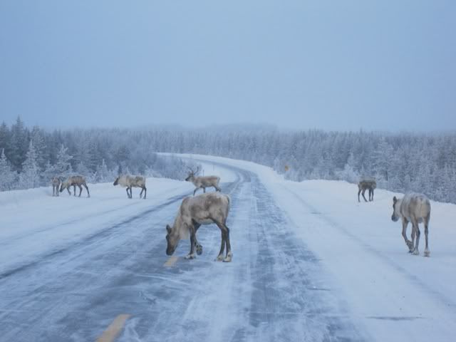 Enfin, pour votre propre bénéfice, sur notre chemin du retour le 27 décembre, nous avons aperçu les plus grandes hardes de caribous (on parle de milliers de caribous) dans les secteurs immédiats de Radisson (au sud-ouest km 590) puis autour du km 491, tout juste à lentrée de la zone 22A. Il semble que cest là que ça se passe!